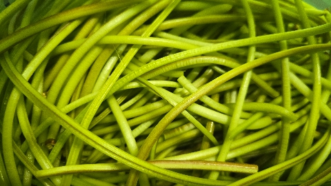 1. 데친 고구마순을 적당한 길이로 자릅니다.